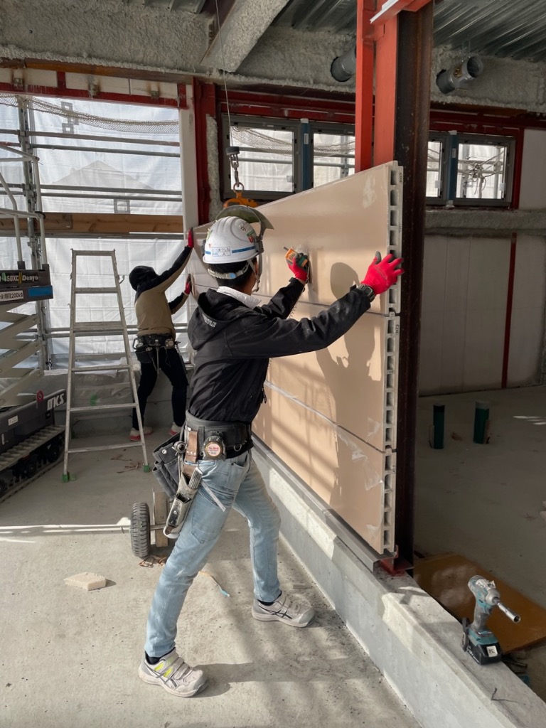 松下興業では主に、ALC、ECPの組積工事や建て込み、